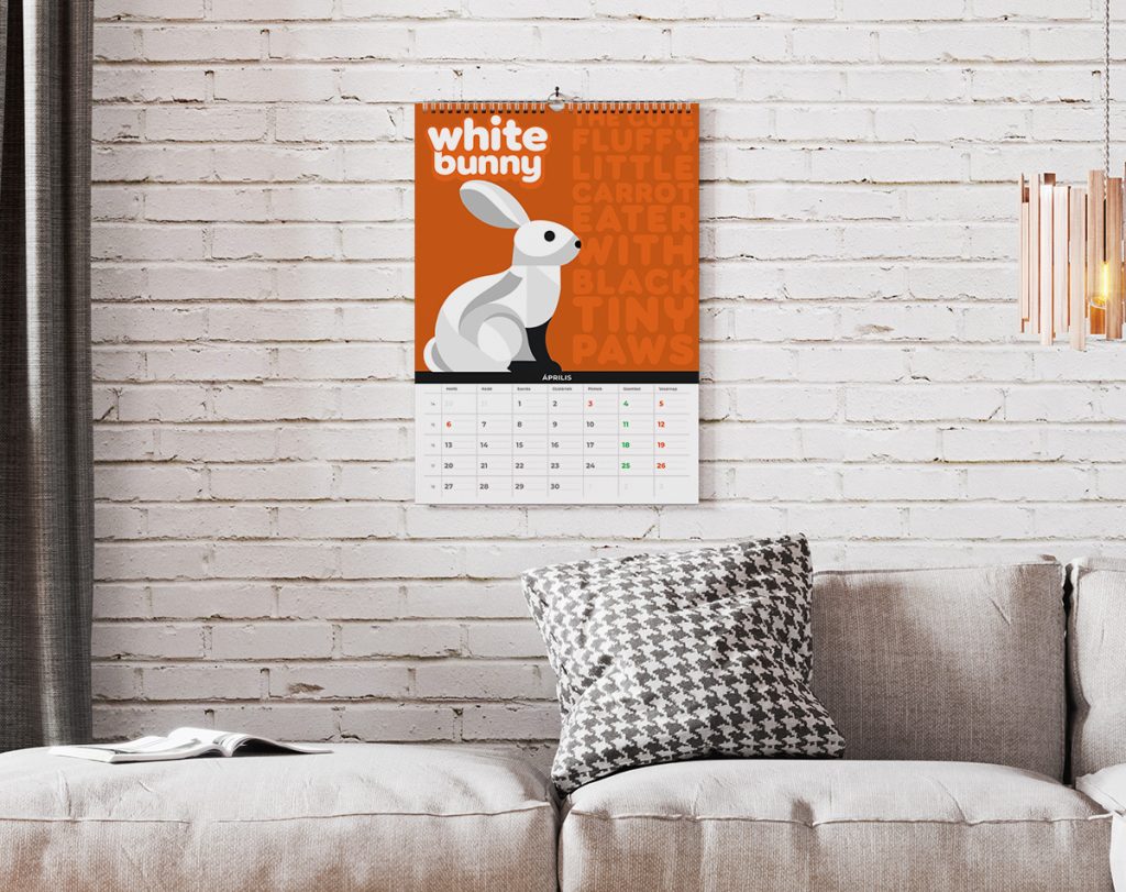 1 db A3-as borítóképpel és 12 db 297×280 mm-es egyedi képpel, arculathoz illeszkedő színekben.
