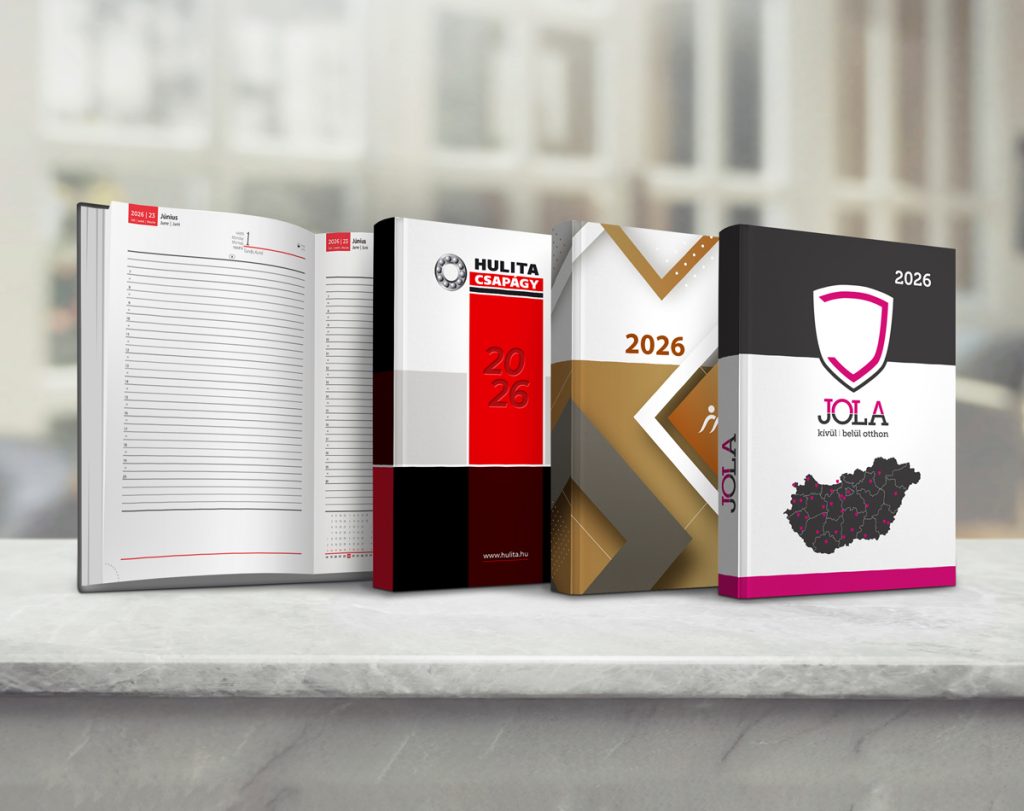 A5 méretű, napi beosztású, cérnafűzött egyedi céges határidőnapló.