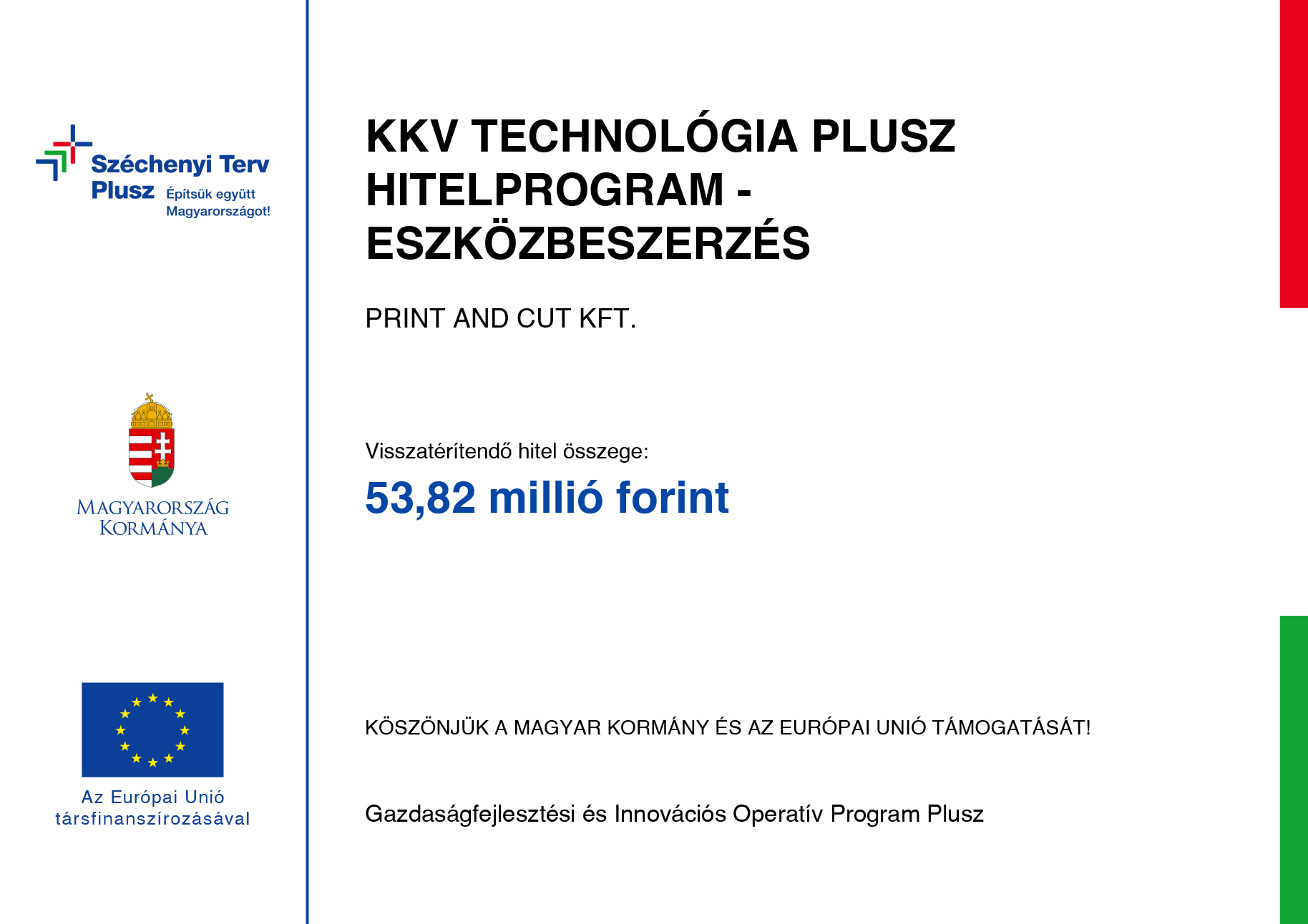 A GINOP PLUSZ 1.4.3-24 KKV Technológia Plusz hitelprogram beruházási pályázat keretében a Print and Cut Kft, mint végső kedvezményezett 11 db új eszköz beszerzésével 53,82 M Ft összegben, jelentős mértékben tudta fejleszteni, bővíteni gépparkját.